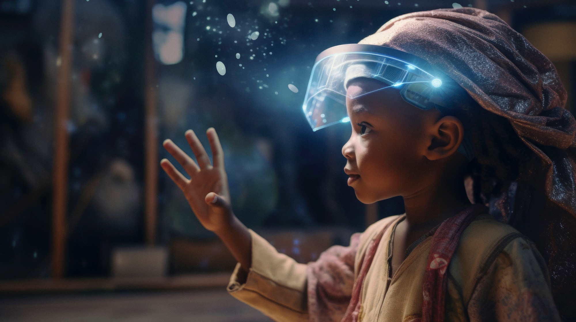 Firefly_A modern ICT lab in a school, with four young African-American children sitting at sl 734387